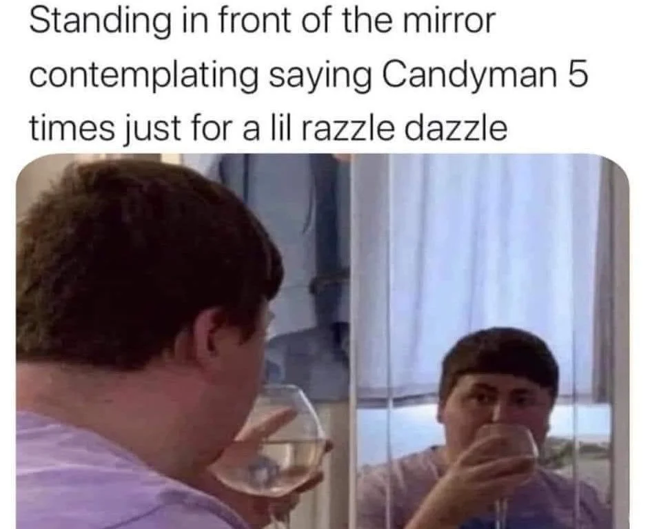 Apparently my aunt who was babysitting my brother and I at the time thought this would be fine viewing material to keep two children occupied! Let’s be real, any movie that tells the story of a Black slave falling in love with a white woman ain’t ever gonna end well! And don’t do it!! Don’t you even think about saying his name five times. Damn it. Stop!